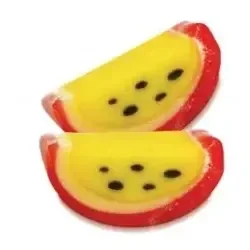 suiker, glucose-fructose siroop, tarwebloem (Bevat gluten),10%appelsap uit concentraat, maiszetmeel, bevochtigingsmiddel: glycerol; kokos plantaardig vet, invertsuikersiroop, acids: citroenzuur; aardappelzetmeel, smaakstoffen, zuurteregelaar: kaliumcitraten; plantaardige olieen (cocos, koolzaad), zout, emulgator: E471; kleurstoffen: E100, E120, E153.
