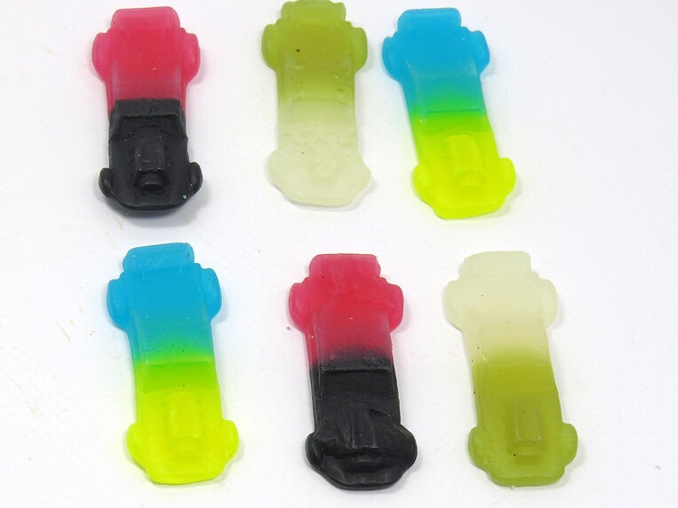 suiker, glucosestroop, tarwezetmeel, water, gemodificeerd maiszetmeel, gemodificeerd aardappelzetmeel, voedingszuur (E270, E296, E330), aroma's, kleurstoffen (E100, E133, E153), concentraat van spirulina en saffloer, zwarte wortelsapconcentraat, plantaardige olie (kokos), glansmiddel (carnaubawas).