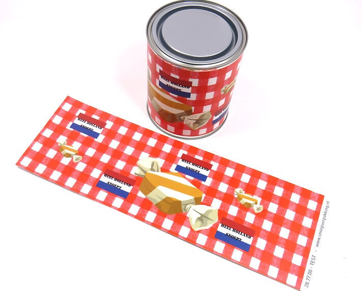 een blik 12 cm hoog gevuld met Oudhollands snoep 300 gram