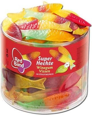Red Band winegums in visvormen. De winegums zijn er in verschillende kleuren.